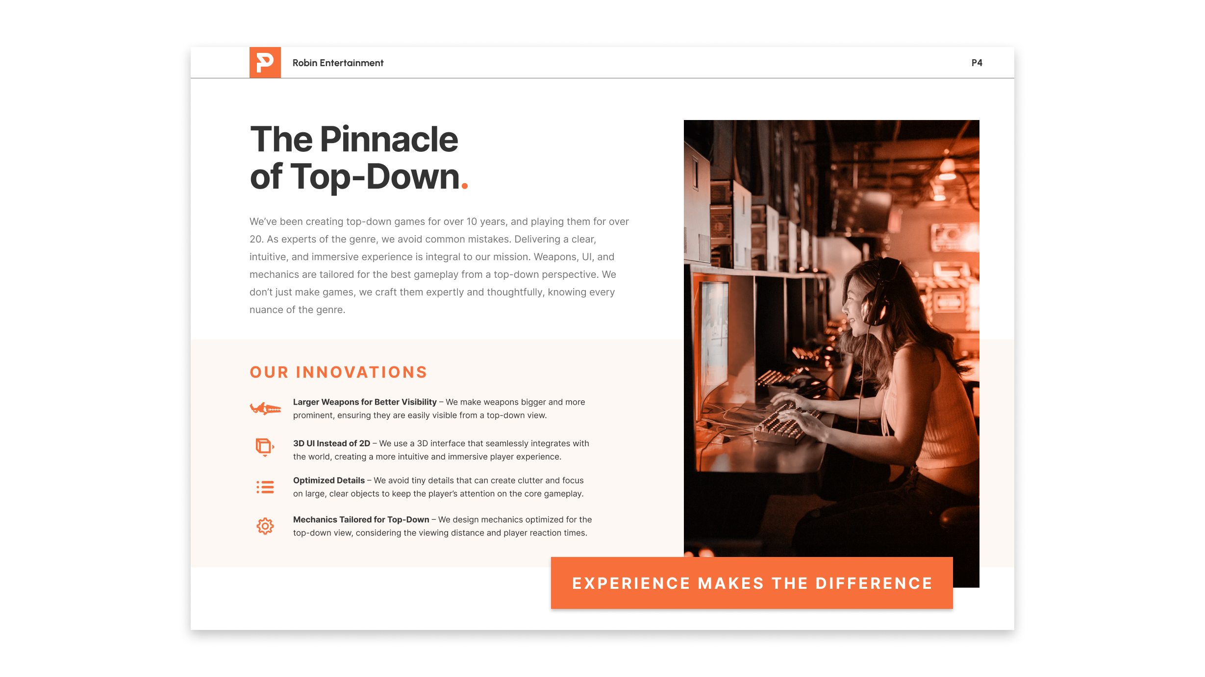 Developed a polished and comprehensive presentation deck for a game studio’s funding campaign, strategically designed to secure investor interest.