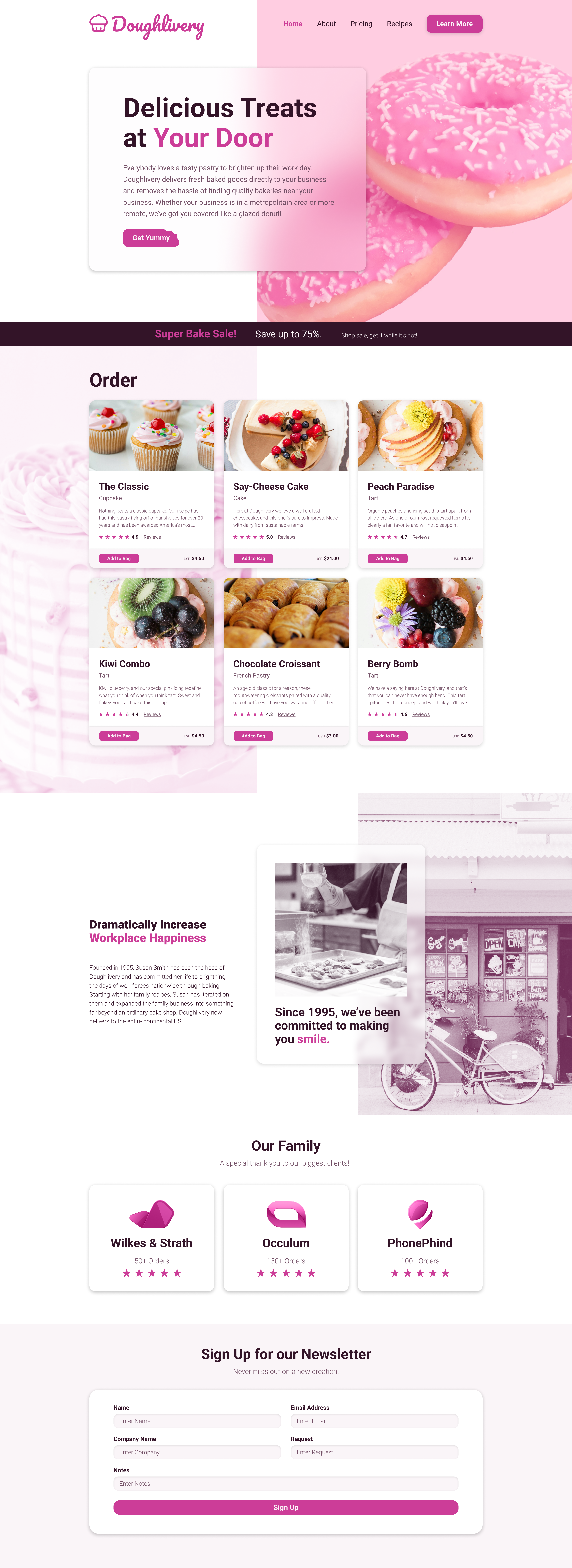 Website for a company that delivers fresh break room pastries and snacks to companies throughout the day.