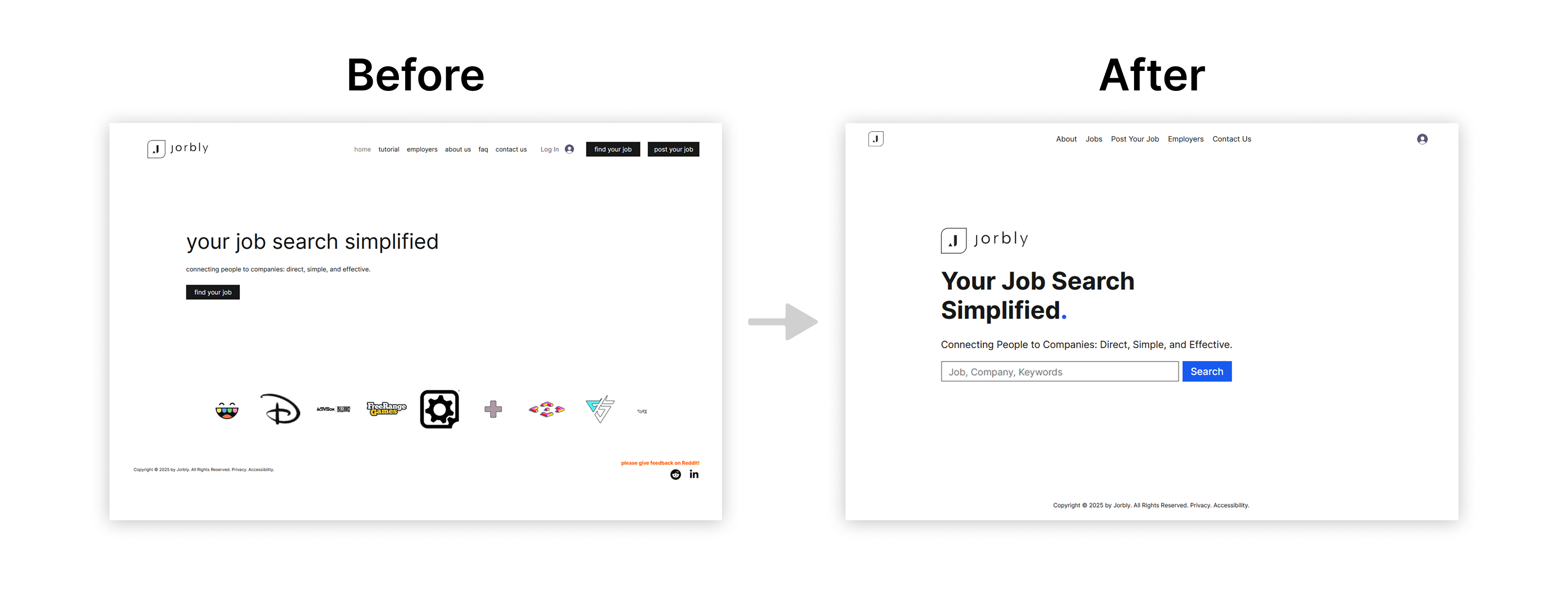 UI/UX consulting for Jorbly, a new type of job board. Founded to eliminate the noise of traditional job boards, Jorbly is a job discovery platform designed to simplify the hiring process by connecting candidates directly with employers.