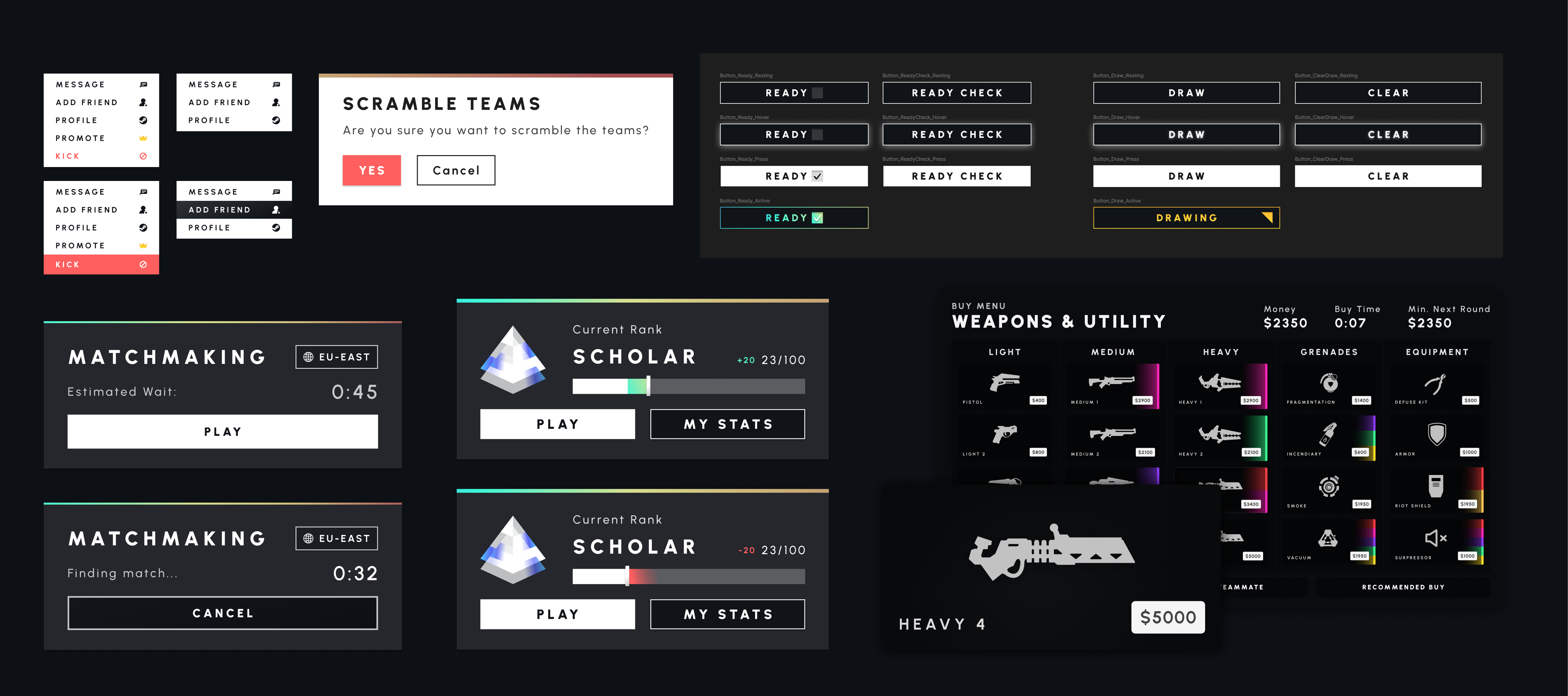 Lead UI/UX designer for a video game in development. Images are from various stages of development.